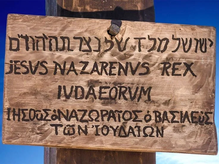 and with Jesus two others, one on either side, with Jesus between them…Pilate had an inscription written and put on the cross. It read, ‘Jesus of Nazareth, The King of the Jews’…it was written in Hebrew, in Latin, and in Greek.”